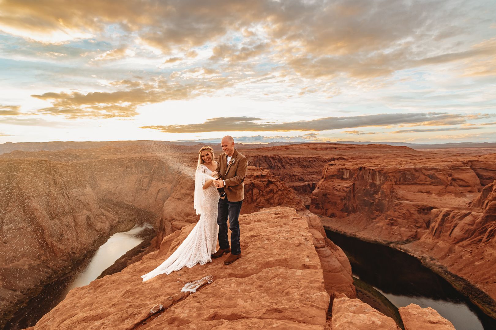 Fast forward to the summer of 2022, we booked our first adventure elopement at Horseshoe Bend. Through that experience, we found vivid clarity in the direction we needed to steer our business. The desire to travel is engrained in us, and yet for so long, we limited ourselves to our home state because we could fill our calendar more easily. This adventure elopement changed everything for us in the best way. We created an entire adventure elopement plan for our couple, from booking flights and Airbnbs to scouting specific photo sites. We photographed them everywhere, from Las Vegas to Lake Powell to Horseshoe Bend. It was the experience of a lifetime, not only for our couple, but for us as well. All we could think was, “This is what we need to be doing.”