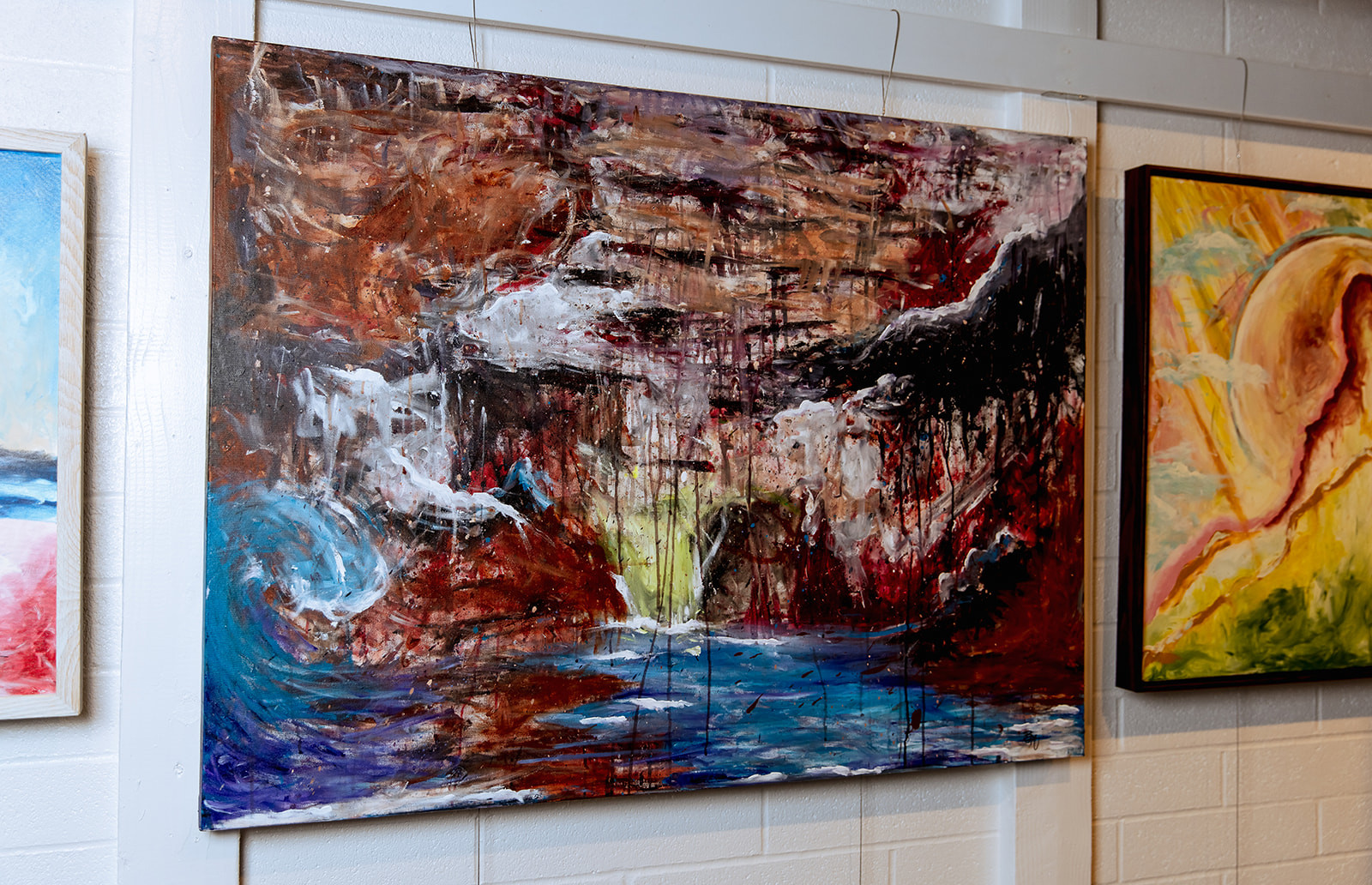 My art, like many other artists, is a channel for my thoughts, feelings, and experiences. I get all of my inspiration from the experience of being human, and our connectedness to the earth and to each other. We are all connected as one and while some things are much harder to talk about than others, we all experience similar emotions and events during our time here. I like to use my art to connect with people on an emotional and spiritual level. Sometimes these are very positive emotions, such as happy memories with a sibling, starting a new business, or falling in love. Other times, these emotions can be negative, like changes in laws/politics, failure, mental health struggles, and being heartbroken. These are the moments in my life where I feel inspired to create, share, and let people know that they are not alone. I tell these stories in a couple of different ways. Sometimes it is in what I paint, other times it is in what I tell people about the piece. But my favorite way to tell these stores is to do so by surrendering my spirit to the process of creation. I allow my emotions and spirit to take over my body and I simply become a channel for the energy to escape through; whatever story is meant to be told is the story that then appears on the canvas. The process has been beyond healing for me, and I hope that when I make these creations it will allow others to heal as well.