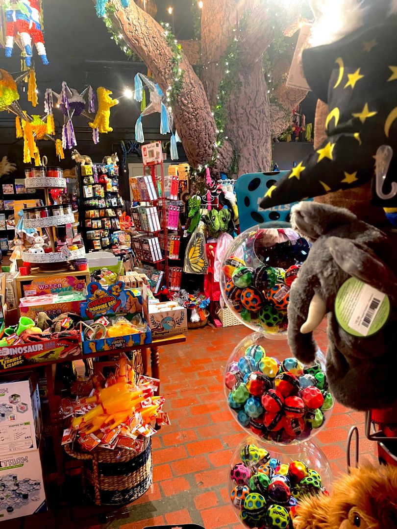 Over a decade ago, I was inspired to open a toy store when I visited a tiny toy shop in Jerome, AZ with my two sons. The shop reminded me of elements of my childhood, and brought out a part of me that I had long since forgotten and buried deep inside. This visit sparked in me a desire to spread the same feelings and experience to others, and I made the statement that someday I would like to open a toy store in my hometown of Prescott, AZ. The storeowner of the former Mr. B’s toy store was my inspiration.
