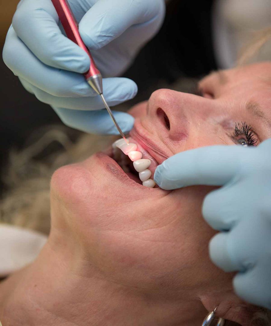 Patients prefer the use of the laser, because it’s much less invasive than using a scalpel. Because it is much less invasive; there is little-to-no trauma to the gum tissues. Because there is little-to-no trauma to the gum tissues; there is little-to-no swelling of the gum tissues. Because there is little-to-no swelling of the gums tissues; there is little-to-no pain. Patients also experience faster healing times.
