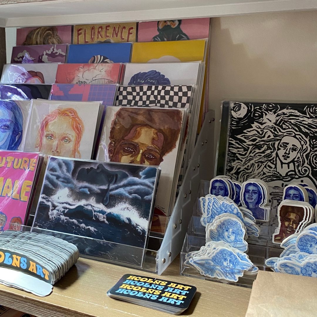 Like many artists, I have been practicing art since I was a child, although I didn’t take my first art class until I was in 8th grade. For the longest time I viewed art as a hobby, not necessarily a career, and it wasn’t until my second semester of college that I became an art major, and even then I was majoring in Art Education, not Drawing and Painting which is what I got my degree in. My business started to blossom during the beginning months of COVID. I was unemployed, not going to school, yet getting all this money from the government that I didn’t know what to do with, so I decided to start Hannah Collins Art (HCOLNS ART). I started selling art prints and stickers at first, then expanded into other products such as tote bags and selling original pieces. I had always done commissions here and there for people I knew but it was reassuring to sell original art that I had created. I think what I am most proud of is proving people wrong. As weird as that sounds, we as artists are always told that we can’t make a living out of selling art and those conversations stick with us. I used these words from others to really push myself to new creative lengths and pursue what I loved. I love to create beautiful, colorful, and fun portraits that people don’t necessarily have to relate to but can just look at and enjoy what they are seeing.