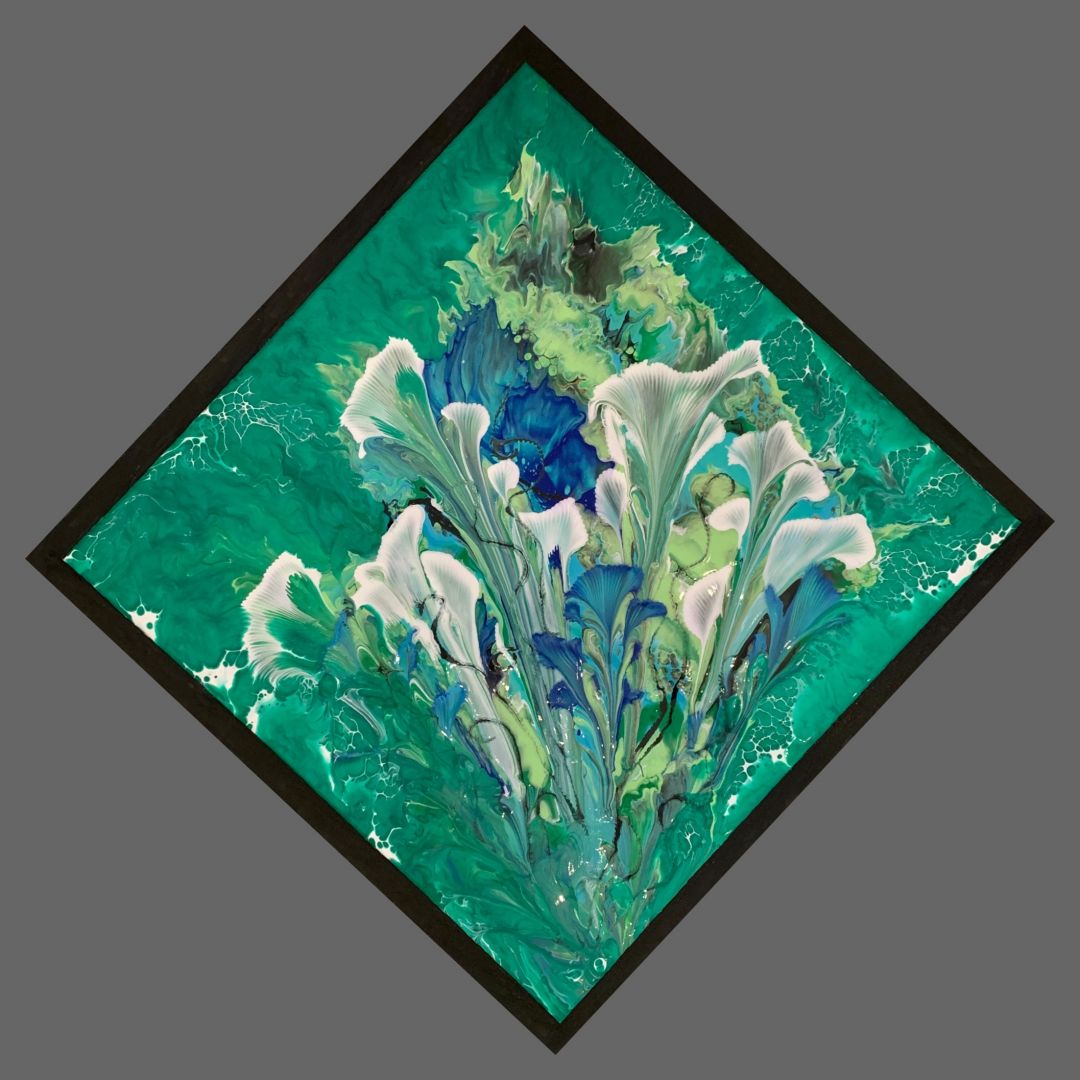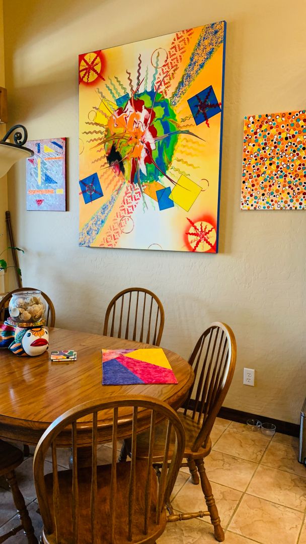 My paintings encourage conversations about what each person sees in a painting and can visualize something different in the shapes and patters they see.