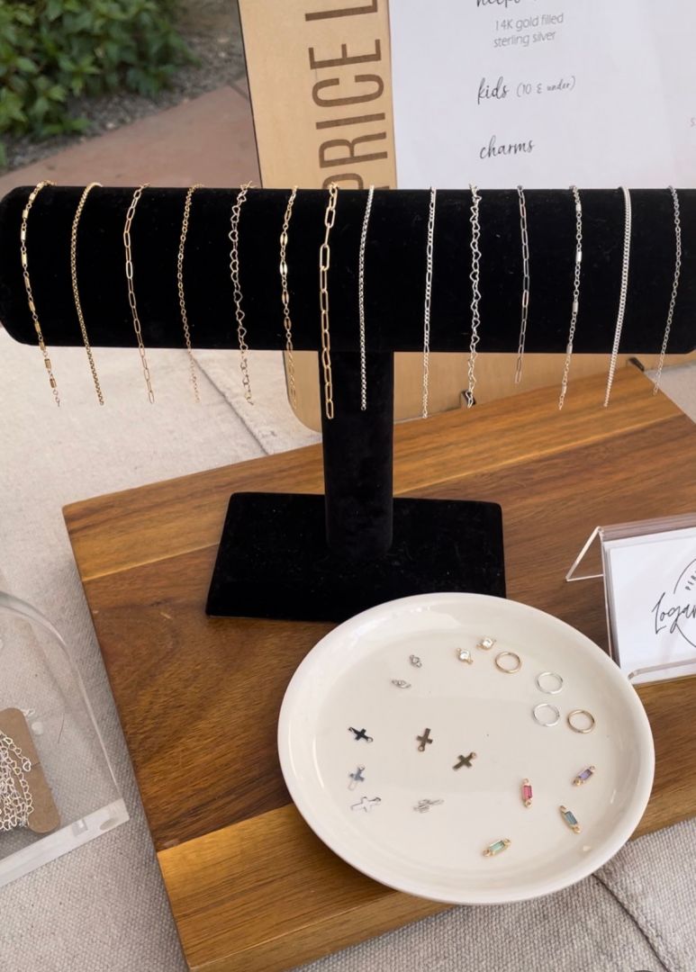 I’ve always had a bit of a creative side, but wasn’t a “maker” and didn’t want to have to dedicate a whole lot of time to building a business. I work full-time and am also a wife and a mom too, which is my most important and favorite work, so I didn’t want something that would keep me away from my family. When I heard of permanent jewelry, not only did I want it immediately for myself, but I thought it would be the perfect outlet for my creativity and a great way to bring something fun to craft fairs and markets in the valley! The extra money on the side certainly doesn’t hurt either!