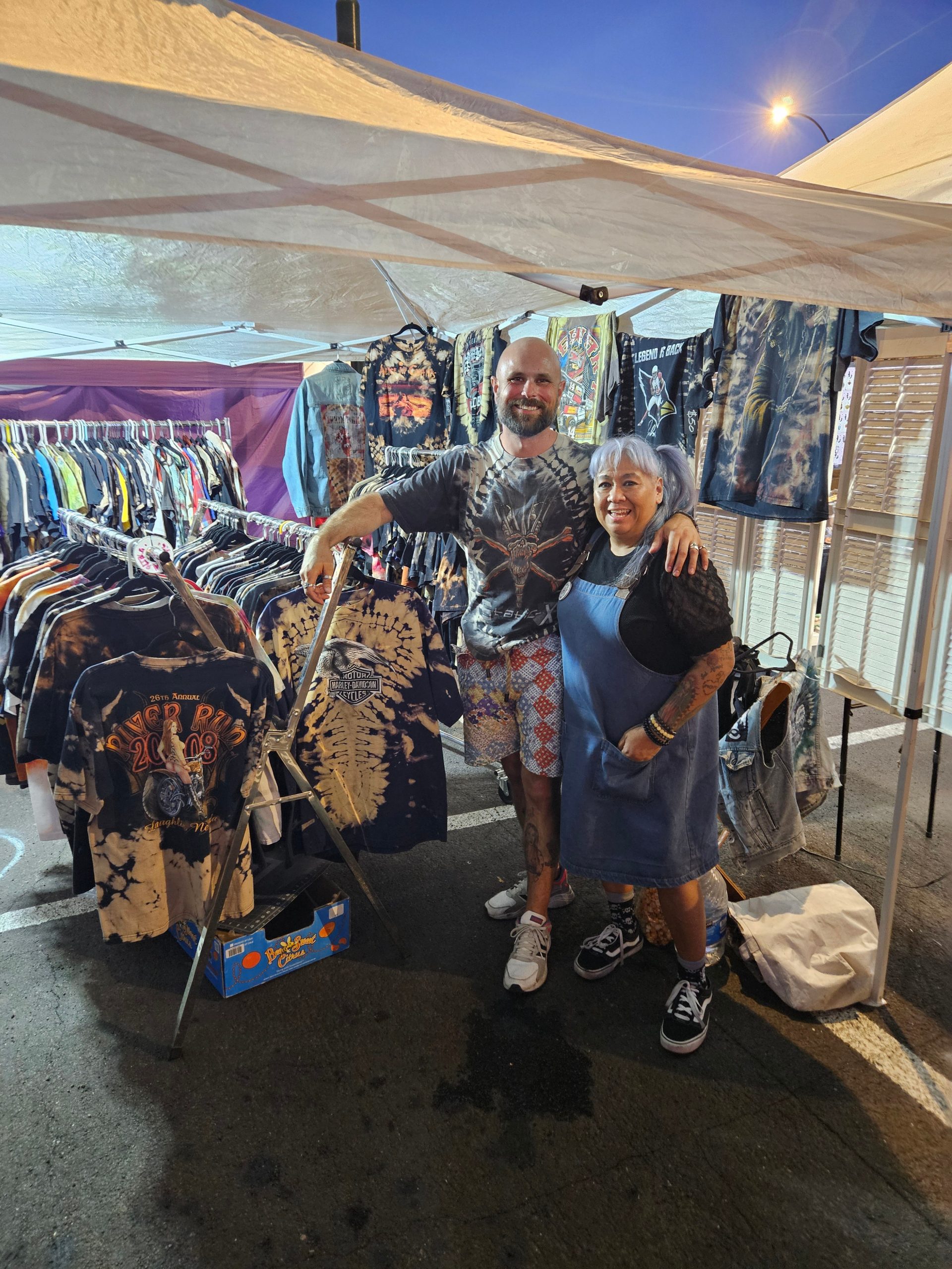 This path would continue unless I accepted the things that had happened. What better way to do that than make it my entire platform. The next thing I wanted was to create something I could vend. But I had never done that, can’t draw, can’t paint, and had no idea how to run my own business. When I did a simply bleach dye for fun I was hooked. Finally there was a creative outlet. Months spent practicing and learning tying techniques, science behind dying, and sourcing vintage and second hand clothing. For the first time I was creating something of my own without critique and judgment or fear of rejection. I was healing in ways I did not anticipate. Seeing myself grow through my art was an amazing experience and continues to be. Believing in my own abilities and trusting my intuition felt like shedding callouses.