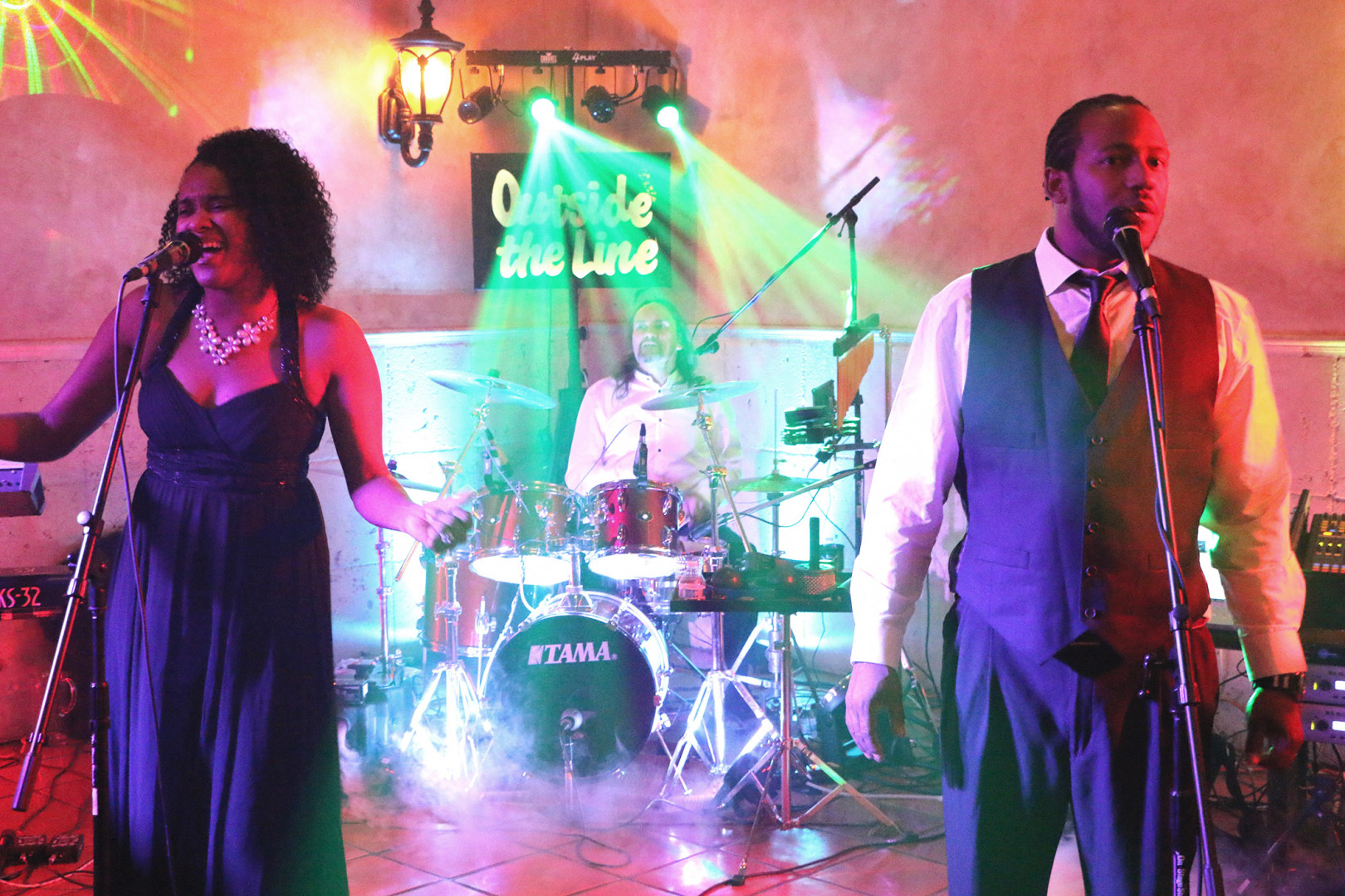 I grew up in a musical family and have played guitar since I was very young. After raising three boys, I devoted a little more time to music.Writing, recording and getting together with friends to have fun and play. In 2008 I started a group called ‘digital blues band” and did a few shows in town. In 2011 it evolved into outside the line band, and we played a variety of cover tunes and originals. It was a fun thing and we did 25 shows a year. Now we do 175! I never thought it would become a business!