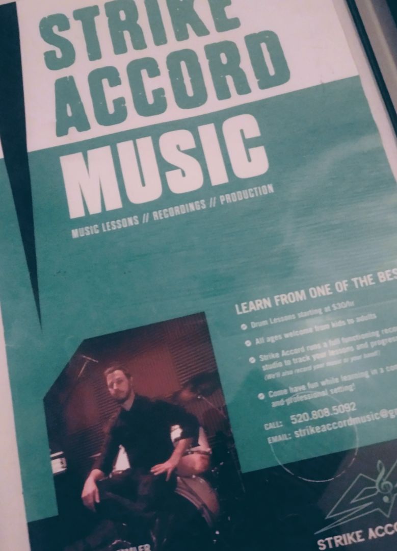 I operate a recording/ rehearsal studio called Strike Accord Music. We offer recordings, rehearsal space, lessons and private events/ concerts. In addition to that, I am a professional drummer for hire. What sets me apart is I’ve struggled to overcome intense adversity and childhood trauma, I’m a veteran of war, I became a father at a very young age and I have extensive experience performing and touring the entire U.S. as well as multiple countries around the world. I am proud of the fact that I stayed involved in what I am passionate about through many trials along the way. Between being a single father, healing from trauma, countless grueling jobs to make ends meet, struggling with addiction and just plain old aging.. I’ve had plenty of excuses to hang it up and play it safer.