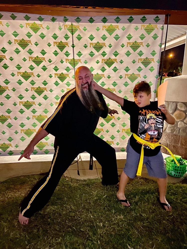I’ve been practicing martial arts since I was a kid (40 plus years ago) and have studied both traditional martial arts as well as modern MMA (mixed martial arts). I have also studied acting and work as both an actor on stage and screen as well as a stunt fighter and choreographer. I was recently nominated for my second ariZoni award for my fight choreography work on Les Miserables under the direction of the wonderful Sandi Carll and Desert foothills Theater. I think deciding to make a living doing what you’re passionate about is never an easy road. I took quite a circuitous route to where I finally ended up. I was an actor, singer, stunt fighter, clown (in the literal sense), ballroom dance instructor, worked in personal protection, security, owned a company that manufactured voice and data communications cabling for 21 years, owned my own martial arts dojo and, ultimately, was asked to be the head instructor at Premier Martial Arts in Gilbert, AZ where I have been for the last 2 years. It took me many years to finally discover what I wanted to be when I “grew up”, but I wouldn’t change my path in any way! Every trial and hardship helped to forge me into the person I am today! I think that the thing that really sets me apart from most other martial artists is that fact the I AM a trained actor (I was a musical theater major when I went to Coe College in Cedar Rapids Iowa) and find great value in being a great listener and communicator. I found out very early in life that you could help your clients best if you first listen to what they truly need. Not what they “want” in many cases, but NEED. I also see a lot of martial artists preaching about kindness, courtesy, discipline, integrity, perseverance, self-control etc, but I truly practice what I preach. I want to be the type of martial arts instructor and role-model that younger people will want to emulate. That alone makes it a difficult job, but one so fulfilling, that it’s hardly an inconvenience. There are many black belts in the world, but I strive to BE one not just HAVE one!