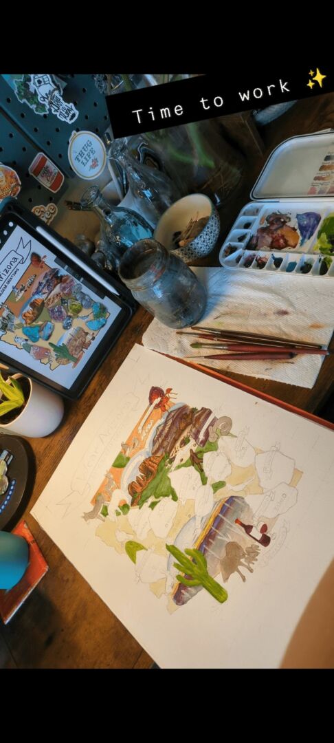 Work life balance is always a tricky thing no matter what your situation is, I’m a stay at home mom to a 4 year-old daughter and I’m very much looking forward to her getting into school. We raise Coturnix Quail and have some backyard chickens to provide for our family, plus taking care of all our other pets: two cats, three snakes, two lizards, one betta fish, and a sulcata tortoise. Finding balance in all that along with my business is definitely a lot but I do enjoy staying busy! Along with my art business, I also offer website design and in-house sticker production to fellow small businesses. My partner helps me balance life and work, they remind me to slow down and give myself weekends off, I also try to not do work after 6pm so I have time with our family and time to myself. Setting boundaries with your work is super important, especially when you work for yourself. I’ve burned myself out several times when I didn’t limit my work hours because I would work early and late, every free moment I had I was working on something. I still find myself trying to do that since it became a habit of mine, I do love what I do so it’s hard to tell when I’m overdoing it. My work life balance has come a long way but it’s far from perfect, I think it will be an ever evolving thing as life changes come and go. Like when our daughter gets into school and I have more time to myself to work full time as an artist, will I work the same as I’m working now but more efficiently? Or will I take on more opportunities? Start new projects that take up more of my time? Only time will tell and for now I just need to focus on each day as it arrives. I try to stay mindful and grounded, I think that is an important ingredient to managing work life balance, it helps you slow down to assess whats around you in the current moment. When I’m not mindful or grounded, life moves way too fast and I feel lost. I’m really grateful for my support system that helps me balance life and work!