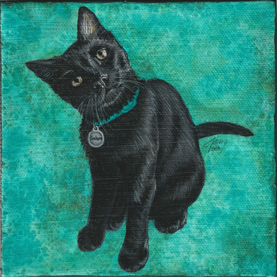 I’m a jack-of-all-trades artist, I do a little bit of everything and I love trying new things! The core of my commission work is in watercolor pet portraits on canvas. Watercolor is a very delicate medium and meant for paper but I use absorbent ground to prime the canvas for watercolor. I also seal my work with a UV archival varnish to protect it from fading or smearing since watercolor can be reactivated with water. Using canvas and UV varnish allows my work to be displayed without framing which is convenient for my clients, I used to work as a custom framer so preserving artwork is very important to me.