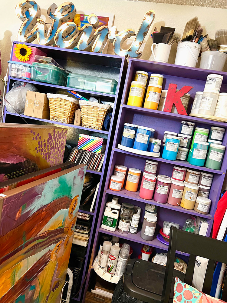 I’m an intuitive painter creating colorful, bold, semi-abstract art inspired by my southwestern surroundings. I have been creating since I was a young child drawing on the wall-sized chalk board my father installed in my room. I studied illustration in school and had a successful design career in Tech for over 25 years. In my corporate positions I designed video games, websites, mobile apps and complex back-ends for software and apps. Along the way I was consistent in creating with varied traditional mediums, but painting has always been where my passion lies. I began showing my paintings in local farmers and crafts markets over 10 years ago and remain an independent artist. In 2022 I left the corporate world and now paint full time. Recently, I have ventured into the gallery world and have some great opportunities to see how that works for my art before any commitments are made. As an independent artist I sell my work through my website and through social media leads along with gallery consignments.