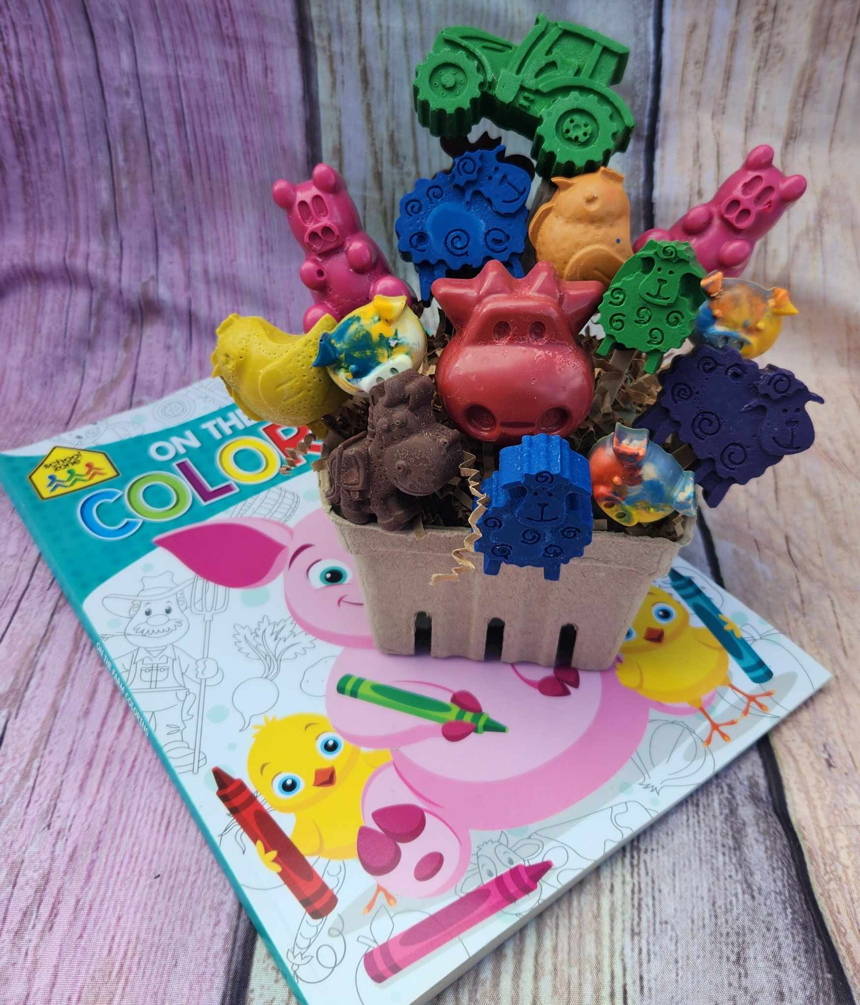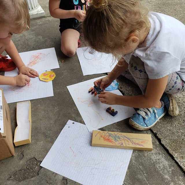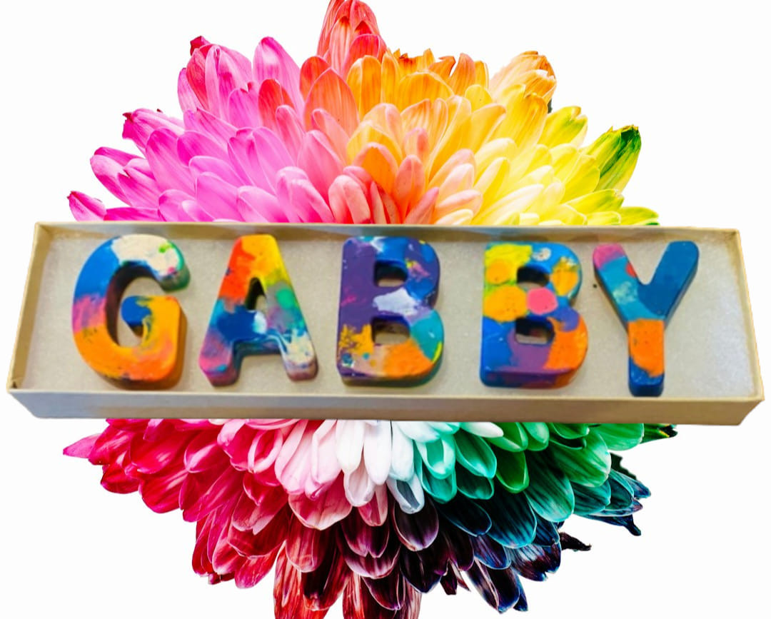 Most outsiders would not know that we have to soak and peel each individual crayon by hand. Also each letter is handfilled,baked, and filled with a blast of bright colors.