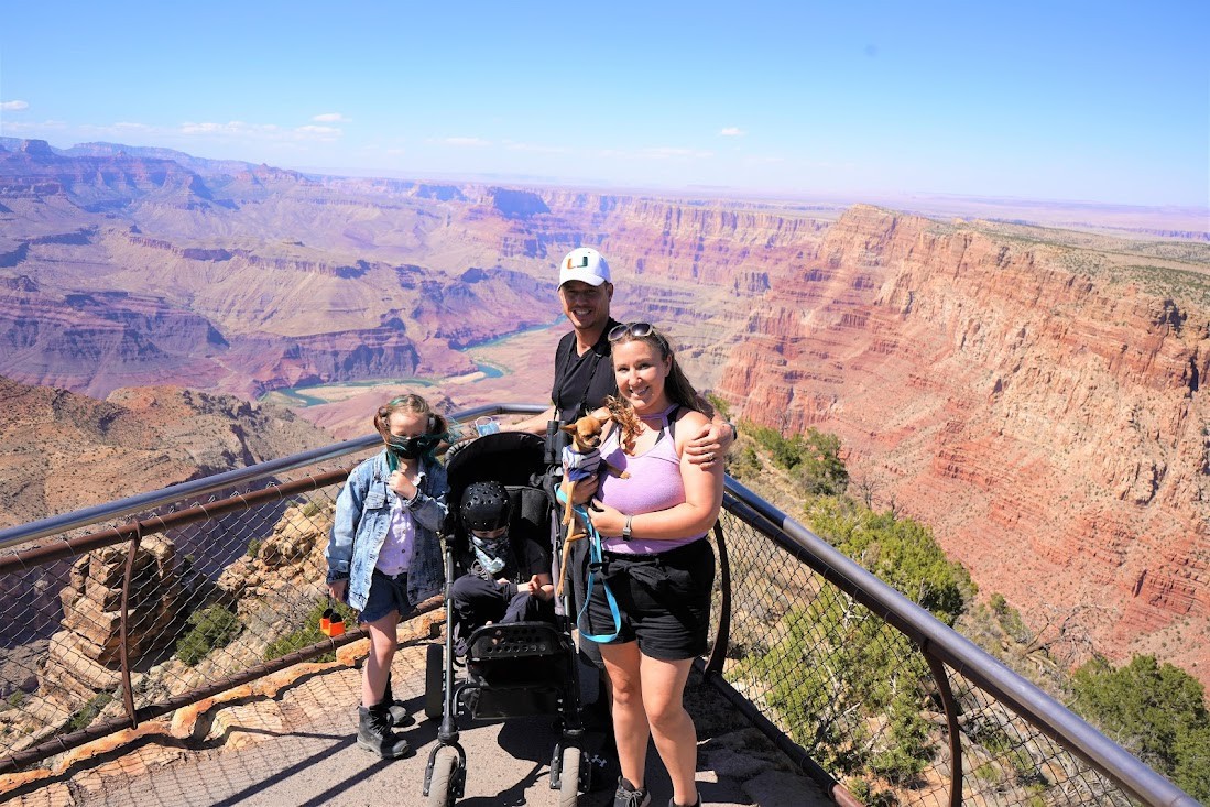 We strive to never put limitations on our children. Our youngest son has a form of Epilepsy that does not respond to medication leaving him with daily seizures and cognitive delays. We were told by doctors when he was 2 years old it was unlikely he would ever progress. With hard work and unconditional love he has learned to crawl, climb and he is starting to take his first steps at 7 years old. We travel and find accessible locations so he can see nature from his wheelchair and his siblings can have a life of adventure and never feel held back. One of our favorite quotes as a family is, “If you believe you can you will if you believe you can’t you won’t”.