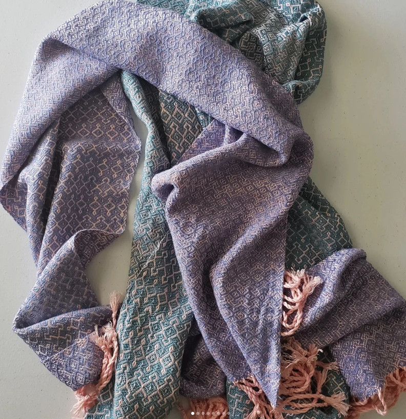 I am genuinely excited and thankful about the fact that I get to create and share my creations with others every day! I am always looking for ways to improve my work and solidify my brand. In card making, my envelopes made from patterned paper have become my trademark and something my customers now look forward to. In weaving, I am constantly learning new dyeing techniques, learning to sew, trying new yarns, and pushing my technical boundaries.