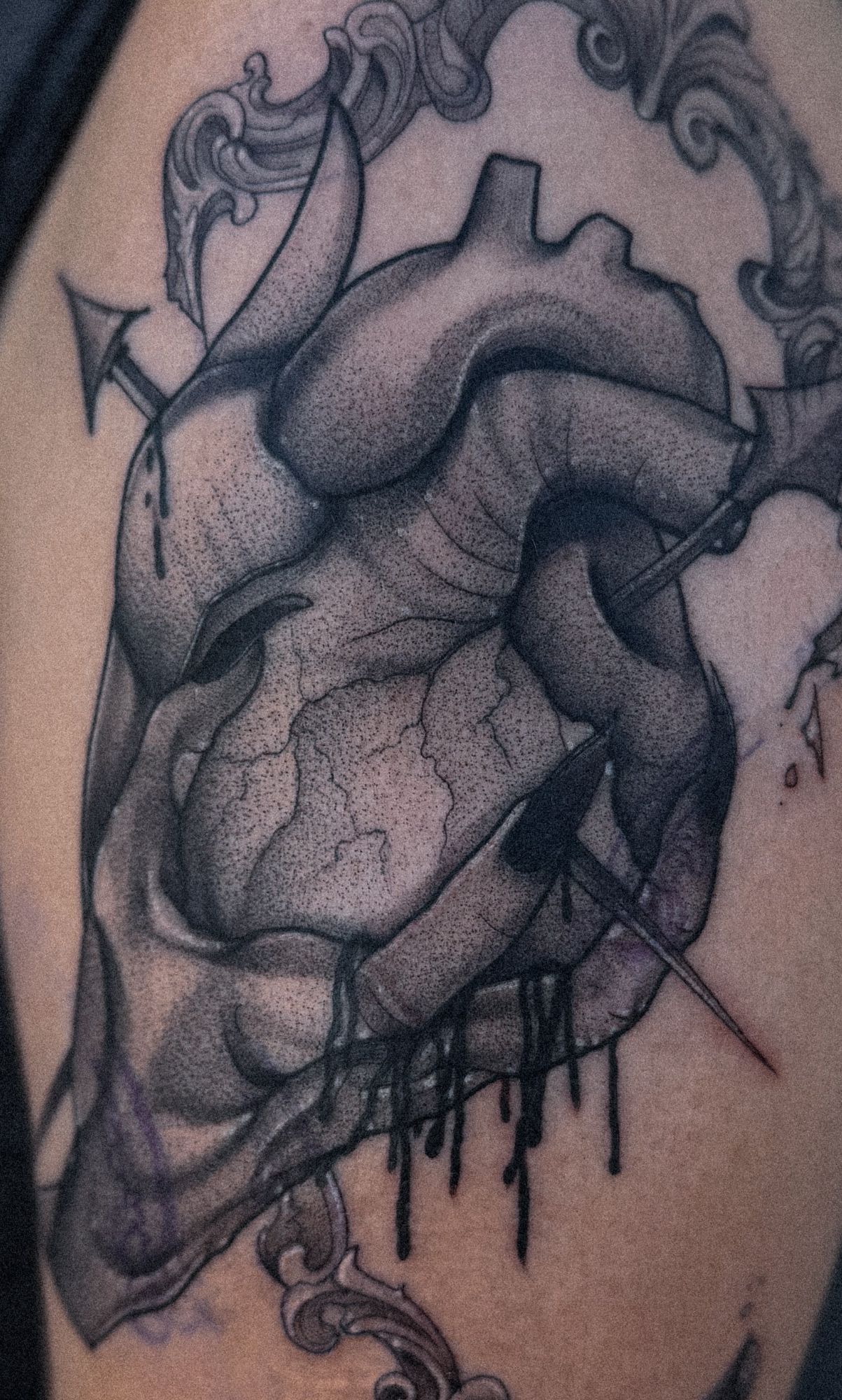 Date I say there wasn’t one?! I was a full time stay-at-home mom. My youngest daughter started part time pre-k, at the time, and I found myself bored out of my skull piece. I’ve worked so much of my life and never really had the opportunity to choose a professional path for myself that wasn’t strictly income-driven. Somehow out of all the “what-if’s” we pulled out of our hat, my husband passively mentioned, “a tattoo artist would be such a dope job.” From that point on, what began as a hobby for myself while the kids were in school born an entire business that financially carried my family through Covid and the uncertainty that brought. It’s been such a beautiful and humbling journey. I guess it was kinda hard to break my heart when I truly had no expectations.
