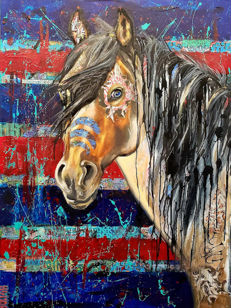 I’m excited about how good – and authentic – this art feels. It has a real, timely purpose – that is, to get people talking with each other about how much we have in common, instead of what separates us. The current and pervading divisiveness in our society is so problematic, and this is a great example of How. Art. Works. Anyone who connects with my art first does so from a visceral level – which is genuine by its nature: they either love the horses OR the graffiti – and then the exchange of learning and appreciation occurs. That message truly energizes and excites me.