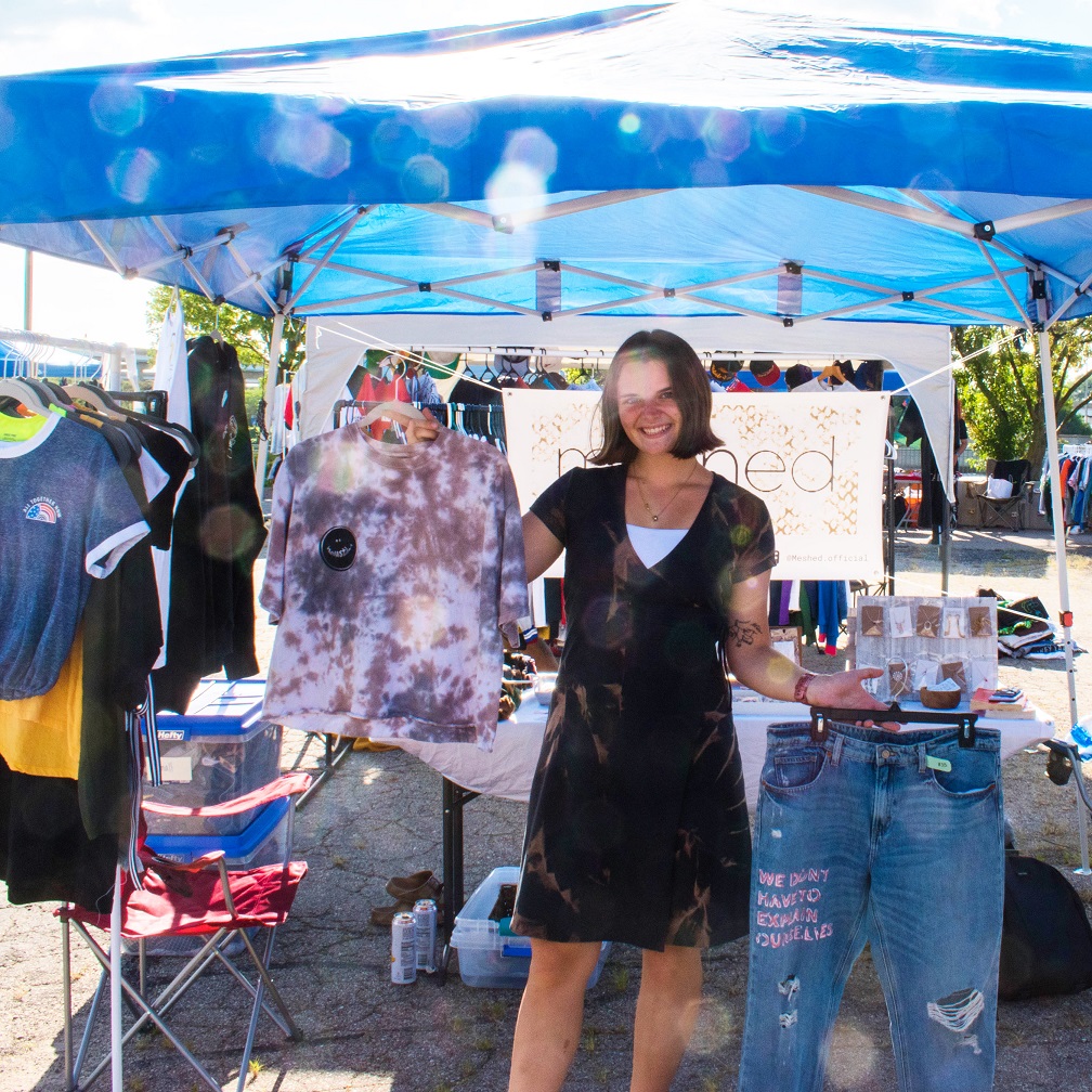 Art is powerful. In many ways, it is what makes humans human. We adorn ourselves with art for self expression, we fill our time with films and music, and we find relief through creating in times of hardship. The impact of art in our modern world cannot be overlooked, and I believe that along with creating art comes a great power and responsibility. Meshed focuses on the particular impact that wearable art creates. Every person is unique and what we put on our bodies should reflect how we feel about ourselves on the inside. Meshed Makers create pieces of clothing and accessories that are unique and promote confidence, kindness, and acceptance for the wearer. We work to promote positive self talk, healthy habits, and mindset shifts with the work we create. We also highlight a push toward improved sustainability through repurposed and thrifted items with many of our Makers. Lastly, we are building a supportive inspiring community of Makers through our Maker program. Art does not need to be a solitary act and the wellbeing of our Makers and Meshed community is at the forefront of our mission.