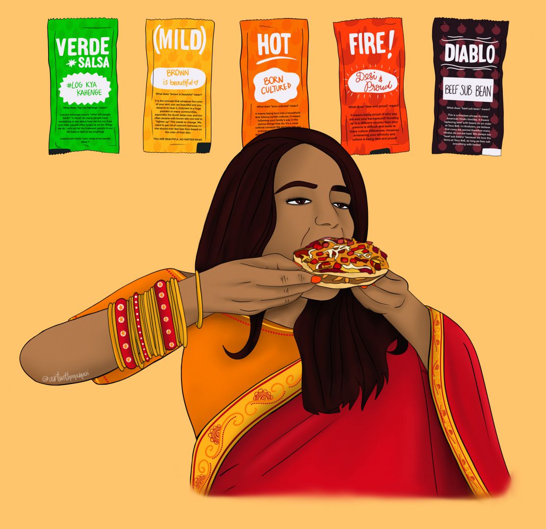My art is a reflection of my journey as an Indian American woman navigating the complexities of growing up with two distinct cultures. I have always created art that combines elements of my two identities, addressing topics that have personally affected me, such as colorism, societal pressures for early marriage, and the challenges of embracing curly hair. Through my art, I have found a platform to not only showcase my creativity but also address issues that are close to my heart.