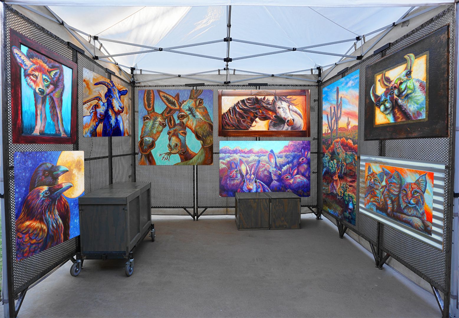 The one with the group is a family that purchased my rabbit painting in the booth My husband and I together Me painting booth shot