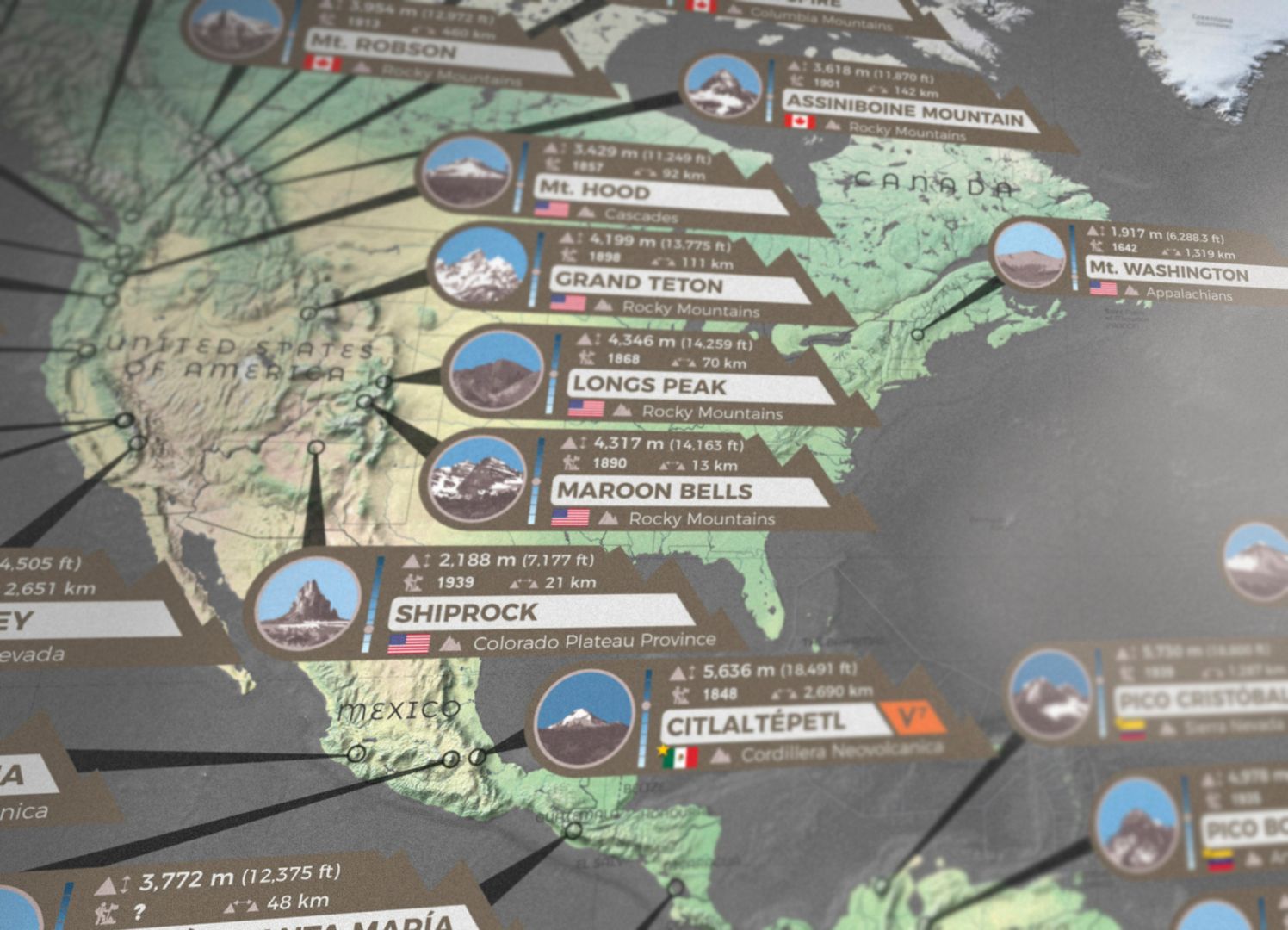 I achieved this by making unusual thematic maps (volcano world map, airports world map, oceanic world map, mountains world map) and working on the graphics to get a “wow effect”. I want people to say “wow” when they see my maps and want to hang them at their place, home or work office.
