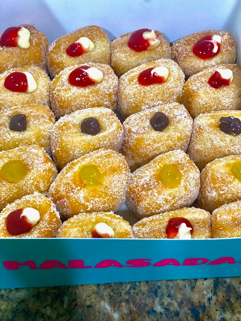 We are a local, family-owned business serving topnotch malasadas (Hawaiian style donuts). We receive rave reviews, even from people who’ve had malasadas in Hawaii. We have something for everyone. We offer plain, traditional fillings, tropical flavors and have featured flavors, regularly. Favorite flavors change amongst our family and customers.