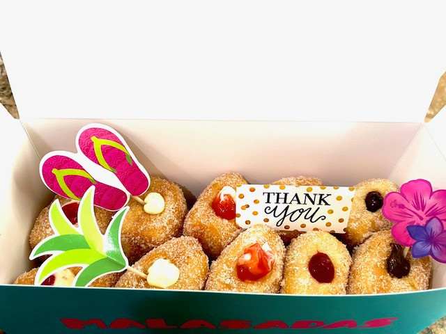 We are a local, family-owned business serving topnotch malasadas (Hawaiian style donuts). We receive rave reviews, even from people who’ve had malasadas in Hawaii. We have something for everyone. We offer plain, traditional fillings, tropical flavors and have featured flavors, regularly. Favorite flavors change amongst our family and customers.