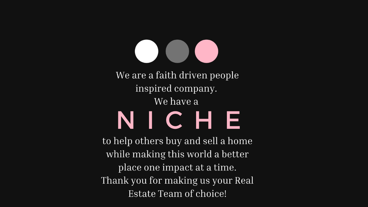 I own Niche Home Team based out of Arizona and next year we will be in Texas (where I am originally from). We are a full service real estate team that does everything opposite of what the “real estate world” tells us to do. On purpose we make sure that all we do will leave a legacy. For over a decade I tried leaving real estate because it can be a peaks and valley type industry (we are 100% commission). However, a little over a year ago I quit a six figure job to pursue what I knew I was supposed to do: real estate. I literally went from six figures to ZERO $ and I have not looked back since. I knew that in order for amazing things to happen I needed to make room for bold faith. Now don’t get me wrong, I did not leave the job because I wanted to. I left because the company vision changed and my heart was no longer in it. I swore from that moment on that I would never work for someone that did not have my same values. So I became a full time Momprenuer and got my God-given purpose trademarked. Outside of my family this is the one thing I am most proud of. I own and operate a company that has the slogan: A Faith Driven, People Inspired Company. HOW POWERFUL IS THAT?! If someone doesn’t like it, then it means we will not share the same value and mission from the get go. My team would not be the right fit, but we are happy to refer to someone that would be. Niche Home Team isn’t looking to be the #1 team in Arizona or the world. We are seeking to make the difference in one person’s life, knowing that if we stay the course with this philosophy we will help make the world a better place.