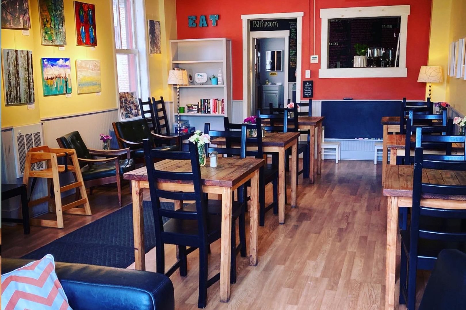 My husband, Ammon, and I moved back to the city of Harrisburg in PA in 2010 from the suburbs. I’m a graphic designer and had been working at Messiah College in the Marketing and Public Relations department. My husband was a freelance illustrator. We both love to host and create fun meals for our guests and had learned to cook and bake by reading books, watching cooking shows and a lot of experimenting. I love cooking and him baking. At the time, I was ready for a career change and had started dreaming about starting a cafe. He said “let’s go for it!” As we got to know our neighbors, we realized the Midtown community, where we lived, did not have places to go for breakfast. We wanted to create a space that was warm, welcoming and served great breakfast and lunch foods and coffee. We found a location in May 2012 and our landlord let us renovate and create the space into what we had envisioned. I created the menu, designed the logo and promotional materials as well as the layout of space and hired employees. He took care of renovations, building tables, shelves and the pastry case as well as figuring out the licensing, codes and ordering all of our equipment. We opened our doors in February 2013 to lines out the door. It was both terrifying and exhilarating! The community gave us their full support and has been amazing over the years. We said we’d see how it went for a year and here we are, almost at 10 years!
