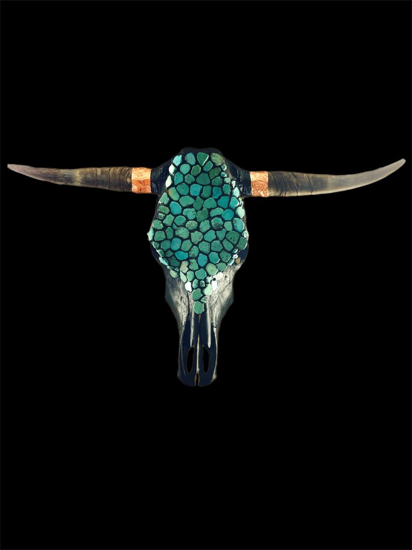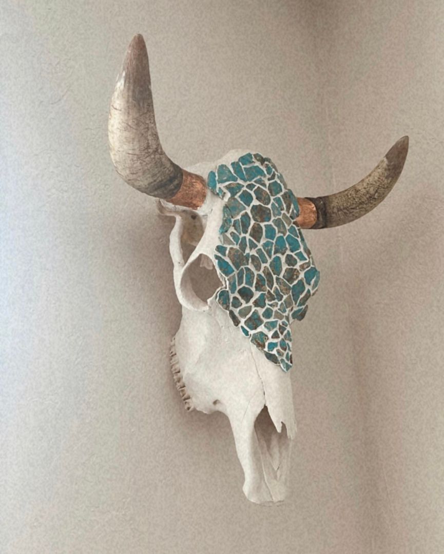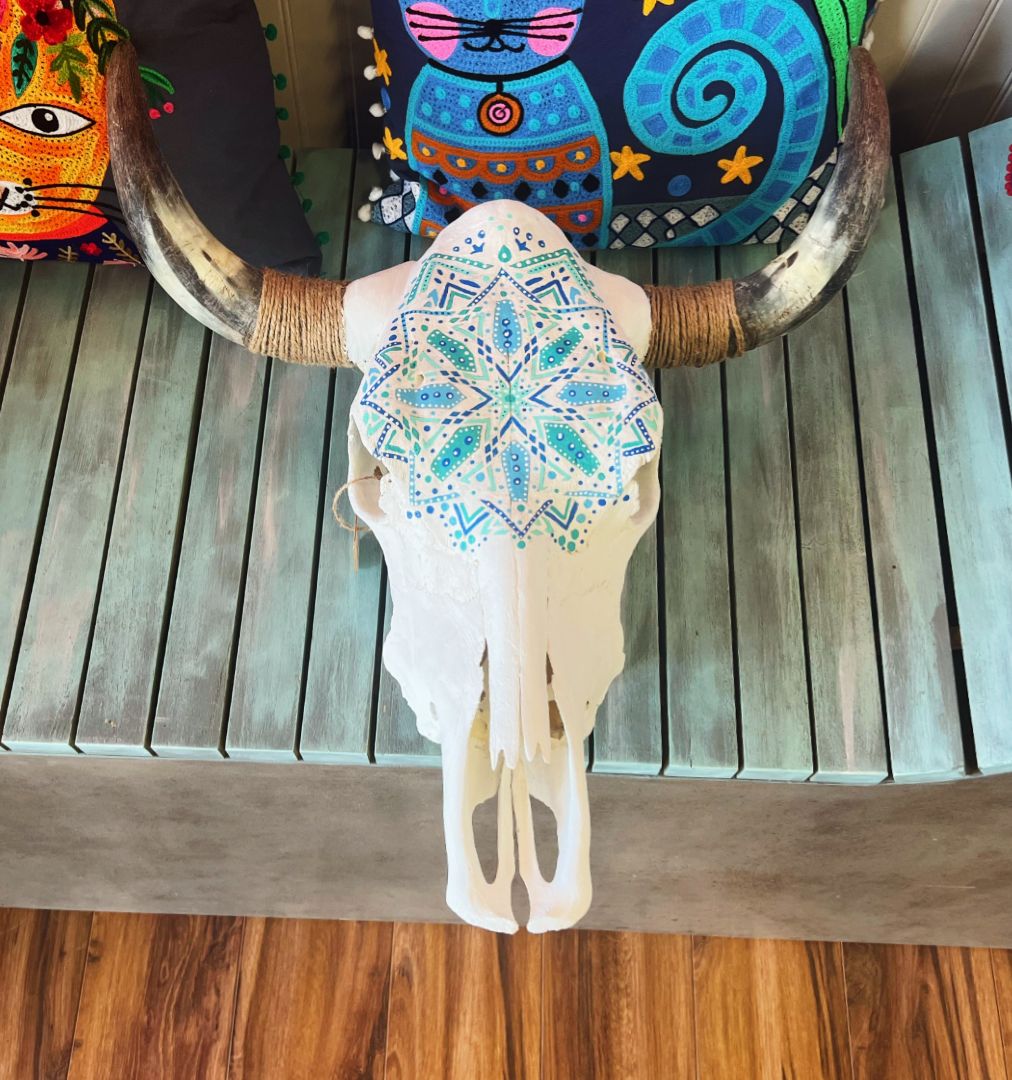 I started to get into the world of art when I was younger. For a while, I stopped doing it, And during that time I started to suffer with anxiety. One day at a friend’s house, she had a cow skull laying around and she told me to paint on it. While painting, I was so focused and was distracted from feeling anxious. As I started to create more art on cow skulls, people started to notice. Then, I got asked by multiple people for custom skulls. I created my business, and the rest is history.