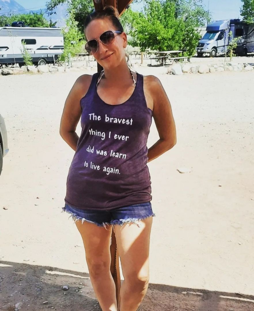 My “Life After Loss” collection was born after the tragic loss of my beautiful daughter, Ashley Nicole Rissi. One day while showering the words, “The bravest thing I ever did was learn to live again” entered my mind. I felt that I needed to do something with this. So I began a clothing line stemming from this. I also do both acrylic paints and sketching mixed into my art. I love photography where I make my own arrangements of flowers and candles, then photograph them putting them on canvas or in a frame. All of my artwork sends a message of hope, healing, and love. It is made to bring all of us together who are suffering through times of grief so we can all make it through together.