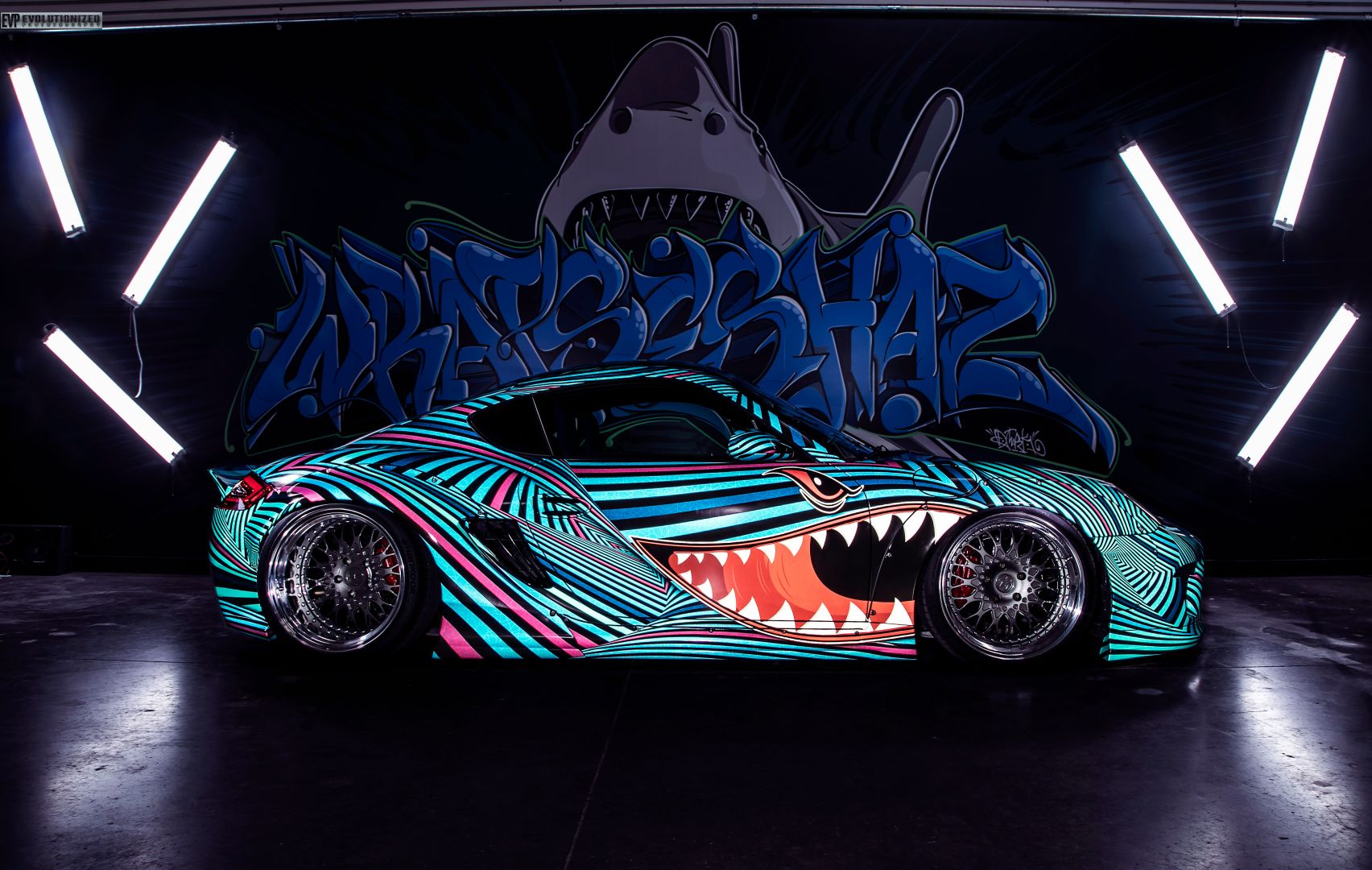 Our road to success was no easy path, but I am a firm believer that you reap what you sow. Most take the same route while few make their own, and if having a business was easy, then everyone would do it! Michael and I began working together at another local graphics shop. I began as an apprentice under Michael and have learned everything I know about wrapping from him. We love being a tandem wrap couple and working together. Less than two years in and we had a falling out with that local shop, and ended up walking out of that job. That is when we decided we were going to do our own thing and start a business. Neither of us had any business background or schooling. We had no investors, no savings, no money to even put into starting a company. We began wrapping motorcycles in our dining room! The struggle was real, to say the least. We encountered many financial hardships in the beginning. At one point, we had our power and gas turned off for an entire month. We had a small ice chest of food, and we cooked foil dinners on our fire pit every night, along with suffering ice-cold showers throughout the winter! Eventually, we were able to land ourselves into a shop, sharing space with other automotive restyling companies for the first few years. In the last five years, we have moved to five different locations. If anything, our story is proof that if there is a will then there is a way! We no are situated in a 5000sqft facility that is entirely for ourselves along with our in-house team of nine, AKA The Shark Mouth Squad.